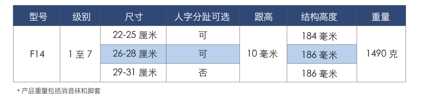 脚跟高度自动调节范围为 0 – 5 厘米,使用者在选择鞋子时几乎不受限制。